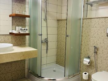 при заезде вдвоём, в номере был лишь один комплект тапочек и принадлежностей для душа