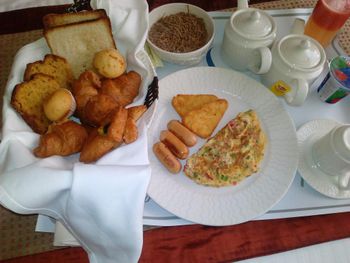Завтрак без изысков, но все было: скрэмбл, ветчина, сыр, круассаны, хлопья, овощи, фрукты, чай, кофе. Могла что-то упустить и не упомянуть.