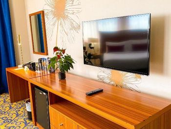 Номер большой и чистый, некоторые пишут что все старое, но нам было отлично, все чистое и функционирует. Две ванных комнаты, удобно, особенно если в номере живут 4 человека. В большой комнате современный телевизор, мы подключили планшет и спокойно смотрели что хотели.