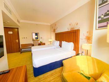 В номере было шумно (вентиляция, шум с улицы), английские розетки (нужно брать переходник под залог 50 aed), дополнительная кровать для ребенка только за деньги