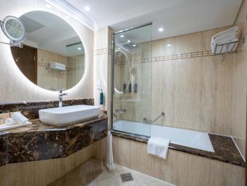 не понравилось то что никто не убирал,персонал не понятно зачем заходил в комнату заправлял постель ну не уберал,окна и балкон ужастно грязные,неприятеый запах,тюль вся в пятнах,когда заселяли без уведомления заселили в комнату для людей с инвалидностью?‍♀️?сумки таскали сами,очень тусклый свет,фен доисторический от которого очень много шума,нет русского канала и на вопрос -есть ли русский канал на рецепшин мне ответили что это арабская страна,хотя мы не первый раз отдыхаем в Эмиратах и везде были русские каналы