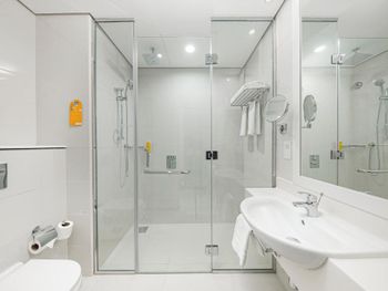 В номерах установлены письменный стол и телевизор с плоским экраном, а также обустроена собственная ванная комната. Среди прочих удобств — холодильник.