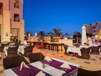 Небольшая территория отеля. находится далеко от города. Нет никаких развлечений как в самом отеле, так и рядом. После захода солнца заняться нечем. Море не пригодно для купания. В воду можно зайти только с пирса. Для купания огорожена небольшая зона. туристы там плавают, как в загоне. Вдоль берега проходит огромный коралловый риф, примерно метрах в 150. Живности у рифа совсем немного. Все плавают как сельди в бочке. Из-за больших волн опасно выходить из моря на пирс. Красиво и ухоженно выглядит только здание ресепшн. В номерах пошарпанная мебель, дырявое постельное белье. Про еду можно рассказывать отдельно. Еда в отеле отвратительная. Честно скажу, я бы всех поваров уволила. Продукты сами по себе дешевые и очень низкого качества. У поваров талант портить их ещё больше. Нет никакого разнообразия. На завтрак дают только яйца, немного овощной нарезки, абсолютно несъедобные сыры и колбасы, выпечка, пара йогуртов. Бесплатный алкоголь отвратительный. На морепродукты расчитывать не приходится. Все продукты, такие как мясо и рыба из заморозки. Говядина похожа на подошву ботинка. Она не жуется. Рыба умерла ещё в прошлом тысячелетии и хранилась в холодильнике. Хорошей рыбы нет вообще, только дешевая, типа Телапии. Один раз подавали осьминогов. Их даже не подумали промыть от песка. Рестораны а ла карте безобразные. Итальянский вообще не соответствует своей концепции. Кроме пиццы ничего из итальянских блюд нет. Блюдо кростини выглядит так: два кривопорезанных куска хлеба, один серый другой белый, подсушены ещё с утра, сверху как попало накиданы порезанные помидоры и сыр ( якобы моцарелла ли Буффало). Один кусок был намочен водой. После замечаний официант это проигнорировал. На горячее был заказан тунец с овощами. вместо тунца было подано куриное филе. Сам шеф-повар пытался мне доказать, что это рыба. Принес мне на тарелке замороженную рыбу, явно не тунца, бледно розового цвета, с которой текла вода.