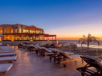 отличная территория, большая ухоженная, свой выход к морю. Комфортные номера, хоть и подуставшие, уборка на отлично, полы реально мыли и все протирали. На территории 3 бассейна (вода холодная, не пользовались) пляж большой чистый, лежаков всем достаточно . Так же 2 бара, один у бассейна второй у пляжа. Постоянно предлагают напитки, мороженное. очень хорошо работает WiFi. Персонал бара дружелюбный, подходит интересуется что принести. Бар в лоби тоже хорош, алкоголь не удалось попробовать, а вот чаек со льдом👌В общем довольны простыми работниками, бегают и заботятся о вашем отдыхе.
