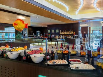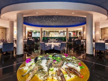 Вкусная еда , много морепродуктов . Рыбный ресторан , за пять дней , можно было зарезервировать один раз .