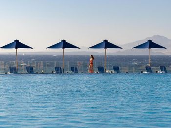 Если вы хотите лежак с хорошим видом на море у бассейна, то придётся заплатить, сотрудник с надписью на майке lifeguard займет для вас лежаки полотенцами за небольшие чаевые.