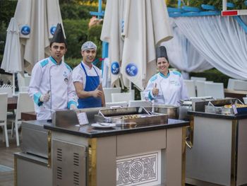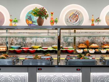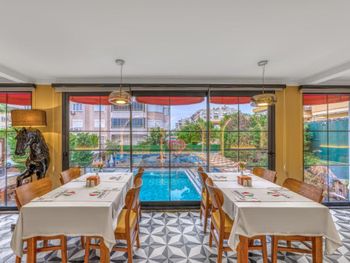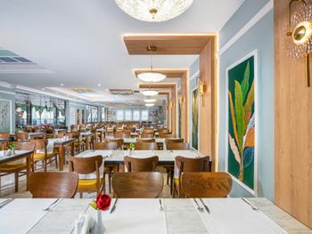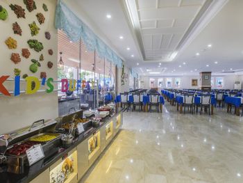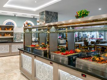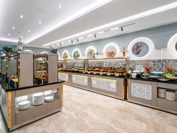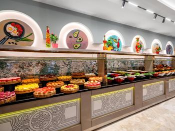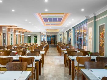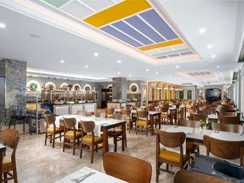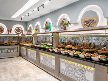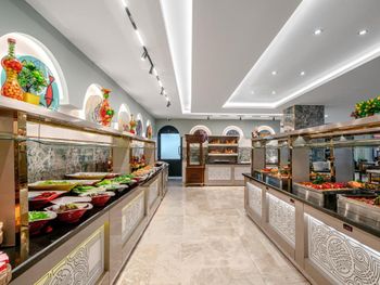 Dining Experience: The family-friendly restaurant serves Mediterranean, Turkish, and international cuisines. Breakfast options include continental, buffet, vegetarian, and vegan. Evening entertainment features live music and themed dinner nights.