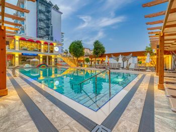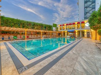 Замечательный отель с функцией All inclusive. Район мне показался отличным, тихо, море в 5 минутах ходьбы со своими лежаками, торговый центр рядом и остановка. Чисто, еда вкусная, есть закуски между обедом и ужином 👍🏻 Нас заселили в просторный двухкомнатный номер, есть чайник, холодильник, чай и кофе в номерах, фен. Заселили чуть раньше, выселились вовремя, но без проблем пользовались и бассейном и питанием до отъезда (кстати, бассейнов 3, лежаков достаточно). Для отдыха с детьми самое то👍🏻 есть пандусы, детские столики, меню, горки, настольный теннис и огромные шахматы! Персонал очень понравился, все молодцы, спасибо Вам за заботу и отличных отдых!