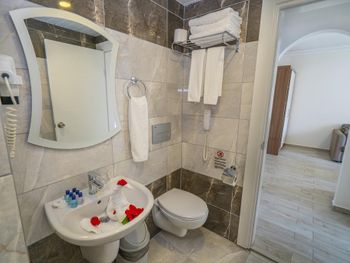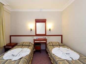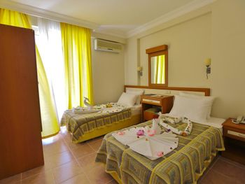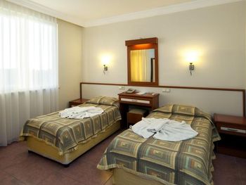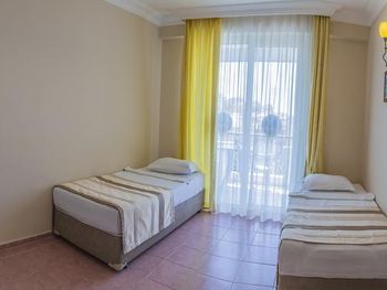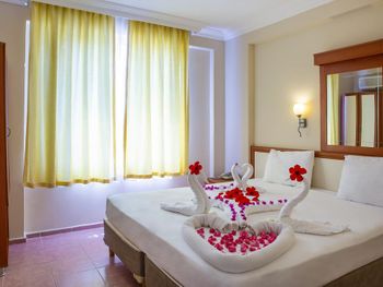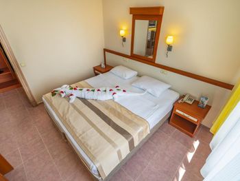 Нам дали большой номер с двумя балконами. Но это было из-за того что уже конец сезона и людей мало совсем. В номере чисто, за три дня прибывания была уборка и смена полотенец. В номере были мыло, шампунь, гель для душа. Очень понравилась улыбчивая девушка на баре Özge. Вино сухое приличное.
