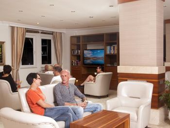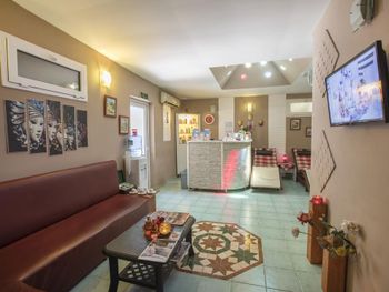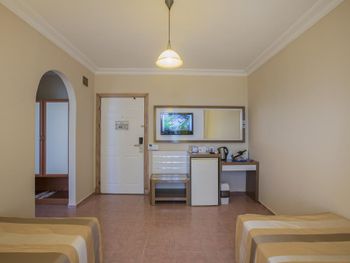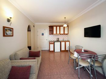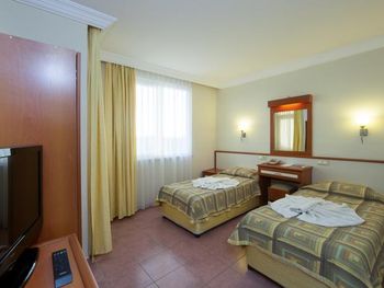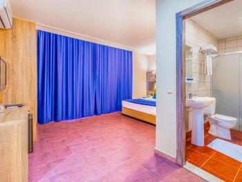 Интернет в номере не ловил, только если прислониться к дверям. Мне нужно было работать, но как подключить ноутбук в их не понятной системе парень на рецепции не знал. Очень очень шумно в номере, так как рядом оживленная дорога, где днём и ночью ездят постоянно машины. Звукоизоляции никакой, я все окна закрывала и все равно очень слышно. Море от номера не близко, минут 7 идти. Еда это отдельная история, непонятные котлетки из непонятного мяса, то ли печенка вместе с ещё чем-то, то ли остатки всего вчерашнего мясного. Куриное давали в огромном количестве тушеных овощей. На любителя. Потом неожиданно шведский стол превратился в порционное, так как они закрывали отель на зиму. Когда раньше можно было выбрать что съедобное, булочки там круасаны, сыр, зелень, картошка фри, то потом нас целый день кормили остатками еды за прошлый день. Это многим гостям не понравилось. Особенно мясные аля котлетки, которые выглядели как кошачьи кокашки (фото прилагаю), рыбы скумбрия сухая , которую не возможно есть, зато хлеба тебе целую тарелку. Красавчик на рецепции русскоговорящий, не очень то приветливый, общался "на отстань". Даже не сказал до свидания, когда мы выезжали. Не приятный осадок. Я купилась на скидку и так как у нас был уже четвертый отель, мне хотелось расслабиться где все включено. Лучше бы взяла в два раза дешевле апартаменты и ходила в кафе кушать, хотя бы удовольствие еды получила.