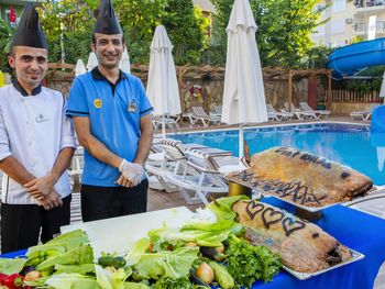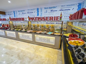 Настолько не вкусной еды мы ещё не ели. Еда в этом отеле ужасная!!! В первый день в баклаве, нам попались волосы. Еды много, но всё не вкусно. Старая, очень сухая рыба, которую есть не возможно. Картофельное пюре, просто выплевали, т.к оно было не съедобное. Мы путешествовали с детьми и впервые считали дни до отъезда. Я отравилась едой в этом отеле и провела весь день в номере, у детей постоянно болели животы, а муж вообще себе желудок испортил, до сих пор плохо себя чувствует. Обещали свежевыжатый сок, но вместо этого у них сок из порошка. Даже фрукты были не вкусные, особенно арбузы, которые они нарезали утром, а потом держали в холодильнике. На сайте написано, что на территории отеля есть бесплатный Wi-Fi, но к сожалению он вообще не работает. За то, чтобы постирать одежду нужно платить и платить не за стиральную машину, а за каждую отдельную вещь, у них price list есть. Например, чтобы постирать одно платье, нужно заплатить €4. Диджей, скучный, такое чувство, что у него пять песен в плейлисте и три коронных звука, которые он постоянно повторял... Постельное белье в номерах очень старое и дырявое...