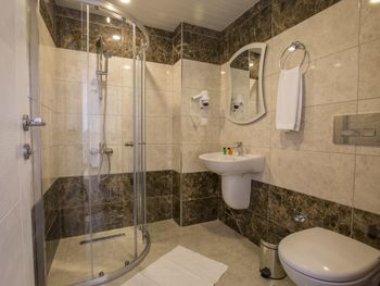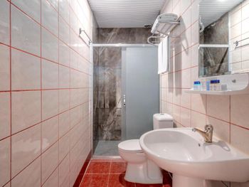 Пляж далеко. Сауна и хамам указаны в описании, но можно посетить только 2 часа в день, а на самом деле совсем не работали. Полотенца меняют только раз в 3 дня! Территория совсем небольшая. В номерах с видом на дорогу в 5 утра орет молитва с мечети. Вечером нет горячей воды. Душевые старые и с плохим напором.