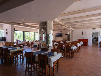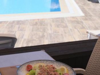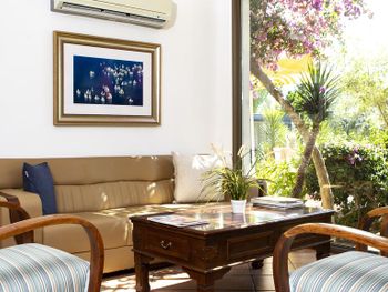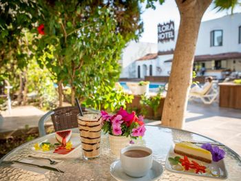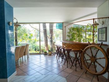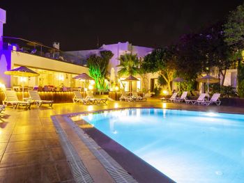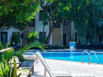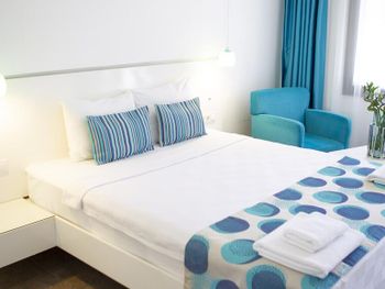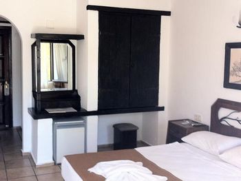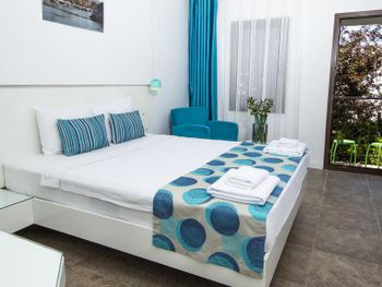 старые обшарпанные номера со скрипящимм дверями, облезшими ручками, запахом сырости. Кровать и подушка неудобные. Размер стандартного номера маленький. Не представляю, как тут размещаться с большими чемоданами. Чайника нет. Воды на троих (2 взрослых и ребёнок) представляют 2 бутылки по 0,33 литра. - нет приватности, шумно, расслабиться в тишине не получится, поскольку окна и двери номеров выходят в общий двор с бассейном, а там весь день разговоры и музыка из бара. Шумоизоляция между номерами и коридорам также нет; - в номере нет сейфа; - в 12.30, за 1,5 часа до стандартного времени заселения взяли дополнительно 10 евро за ранний заезд при условии, что номер был уже готов. Никогда не понимал такую мелочность. Особо забавно это выглядит, что в стоимость включена услуга позднего выезда, но нет раннего заезда. Оплату берут только наличными; - странно для отеля, расположенного практически на пляже, не иметь пляжных полотенец. Для бассейна дополнительно выдали обычные белые, которые используются в номерах. Очевидно, что в том числе поэтому они имеют застиранный вид; - пол в номере грязный, ходить по нему босиком неприятно; - завтрак плох: сосиски в томате, варёные яйца, невкусная выпечка с творогом и колбасой, несколько видов оливок, огурцы, помидоры, джемы, хлеб, отвратительный кофе, чай. Санитария вызывает вопросы, поскольку в ресторане внутри и на территории бродят уличные кошки С явными признаками болезней. Есть в такой обстановке омерзительно.