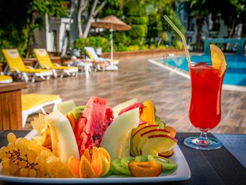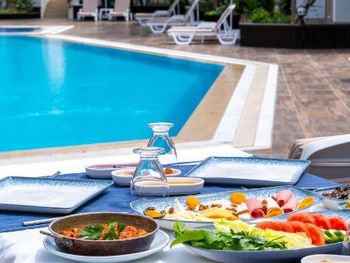 Хорошее расположение отеля. Персонал приветливый и доброжелательный. Что касаемо еды, хорошая, но без излишеств. Всегда были фрукты, мясо, и овощи. Конечно, мяса не по 5 видов, но голодными не останетесь. У нас не было пляжных полотенец, мы попросили на ресепшене нам сразу дали. Хотя все приезжали со своими (в основном в отеле присутствуют местные наверное 70%). Пляжа у самого отеля нет, но вообще сам по себе пляж ну не очень хороший. Вода чистая, но мутная. Мы ходили в лагуны, на дикие пляжи - это идти налево от отеля до шлагбаума и там прям по дороге до конца. В лагунах никого, вода чистейшая, прозрачная, но много морских ежей. И обязательно нужны аквашузы, без них никуда. Вдоль побережья променад из кафешек... цены почти как в Москве: кальян 70 лир, чивас 50 гр - 50 лир, безалкогольные коктейли по 15-25 лир. Деньги менять лучше сразу на лиры, тк курс у них не очень хороший если покупаешь за евро и доллары.