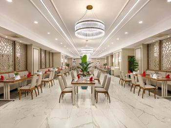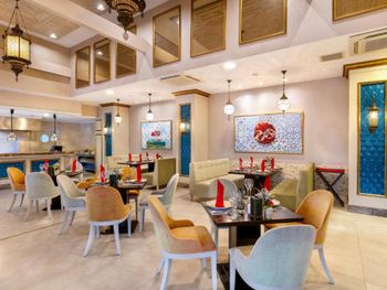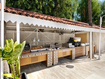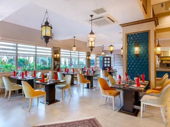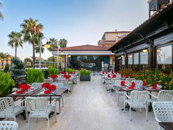 В главном ресторане подают блюда турецкой и интернациональной кухни в формате "шведский стол". В меню 3 других ресторанов представлены кушанья из мяса, кебабы и морепродукты. Трапеза сервируется как в помещении, так и на свежем воздухе. В барах можно заказать разнообразные алкогольные и безалкогольные напитки.