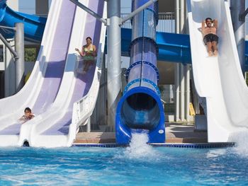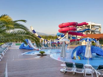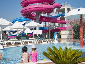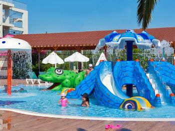 Аквапарк с 6 горками (ещё 2 не работали). Некоторые горки подходят и для "смелых" детей от 5 лет.