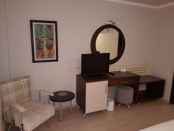 Цена-качество: отличное соотношение! Месторасположение класс, пляж отличный (можно заходить в воду без спец. обуви - мелкая и средняя галька). Чистота. Персонал старается. Еда хорошая. Посуда чистая. Тапки в номере есть (халатов нет). Пляжные полотенца дают (но небольшие размером). Рядом автобусная остановка. Рядом торговый центр и постоянно действующий базар. Доллары меняйте в ювелирных магазинах! Аля карте есть, но работали рестораны до 15 сентября (платно, 10$ на чел.). Очень довольны отдыхом. Персонал не приставучий (баня, магазин и т.д.). Вернемся еще!