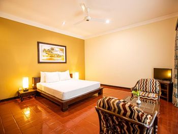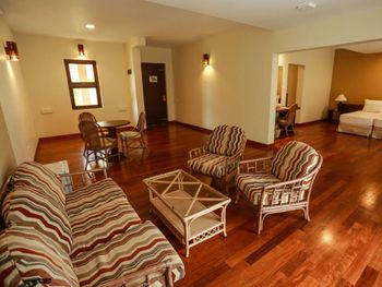 Enjoying views of landscaped gardens, the air-conditioned rooms are equipped with a satellite TV and tea/coffee making facilities. En suite bathrooms come with a bathtub and hot shower facilities.