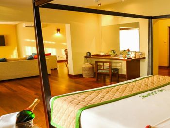 Очень дорого для стандартного пакетного отеля, сервис вообще не соответствует ничему, в номере ужасно грязно было, унитаз тёк, очень много воронов, которые просто мешают отдыхать. Не берите этот отель, чтобы не испортить впечатление от Шри-Ланки. На самом деле, Шри-Ланка чище, гостеприимнее и дешевле. Очень не рекомендую этот отель, дорого и бестолково.