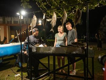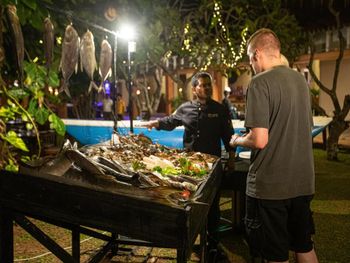 Наше бунгало имело террасу-выход на лагуну. Вид был очень красивый. Напротив отеля есть кафе "У Саши". Особый респект его хозяину Александру (его реальное имя). Если бы не он, то мы бы точно голодали. А у Саши креветки гигантские - это просто супер! Там вся еда - супер. Мы у него проводили даже свои дискотеки! По нашему заказу, нам нарвали королевских вкуснейших кокосов! Саша - чудо человек! И накормит и напоит, и вылечит, поможет с проблемам,, свозит на экскурсии и просто порадует хорошей вечерней музыкой )