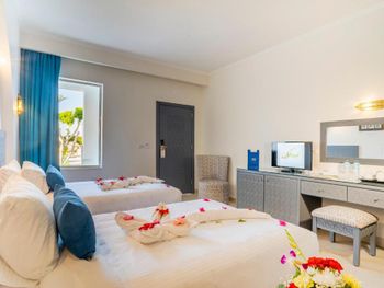 Дружелюбный персонал. Очень чисто. Симпатичные, уютные номера. На территории 3 бассейна. Зимой - в номере тепло, плюс есть кондиционер. С горячей водой проблем нет. Каждый день в номер на каждого дают бутылку воды. Еда - выбор большой, каждый найдет то, что ему по душе.