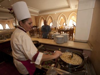 Каждый вечер в главном ресторане отеля гостям предлагают тематический ужин «шведский стол» с традиционными египетскими блюдами. В ресторане Oasis подают блюда средиземноморской кухни и блюда из свежих морепродуктов. Кроме того, на территории отеля работает пиццерия, бар у бассейна и лобби-бар.