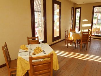 Очень слабый сигнал Wi-Fi, и если в общественной зоне много отдыхающих, то толку от него никакого. Постельное бельё, полотенца и спальные принадлежности в плачевном состоянии. Мебель и ТВ хорошо бы заменить и настроить антенну на большее число каналов. Однообразное меню, хотя некоторые повара стараются и мясо с рыбой получаются очень вкусными.