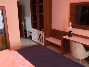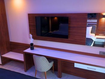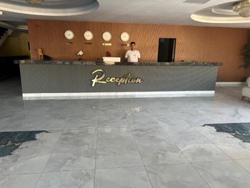 Сотрудники круглосуточной стойки регистрации говорят на немецком, на английском, на русском и на турецком.