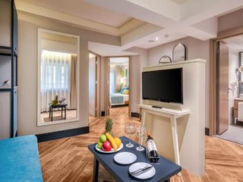 Если брать в расчет обслуживание в целом, то отель на столько далек от 5 звезд, на сколько это вообще возможно. Обслуживание номеров просто отсутствует, ходить в номере босиком - привыкайте к черным пяткам, санузел не моют вообще, шампуни, гели не обновляют, по углам пыль, мусор не собирают, кровати заправляют через раз, зачем-то постоянно забирают одеяла. Просто уму не постижимо как в условиях короновируса руководство отеля пренебрегает санитарными нормами в ресторане, где обслуживают завтраки, обеды и ужины. Посуда вся грязная и заляпанная, приборы достаешь из бумажного пакетика и на них еда от предыдущего пользования. Большая часть персонала - молодые люди, которые без конца клеятся и нет этому ни конца, ни края. Вместо того, чтобы получить свои макароны стоишь слушаешь, что ты сладенькая. В спа-салоне массаж делать лучше у женщин, мужчины не стесняются начинать массаж с оголения своего торса и наклоняются к тему так, чтобы ваше лицо погрязло в их волосатой груди, залазят руками в рот, на резкое требование остановиться и поменять массажиста, обижаются и молча уходят. И ни извинений, ничего. Просят платить за услуги вперед, еще приходится выбивать обратно деньги, и это после откровенного домогательства.