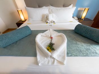 Обслуживание совершенно не соответствует отелю на 5, даже на 4 звезды! Всё очень медленно-премедленно, салфетки , ложки, вилки постоянно брали сами, иначе не дождаться, соль-перец в принципе непринято приносить, цены на алкоголь завышены втрое и очень мало что есть в наличии. Официанты часто роняют тарелки и совершают много бессмысленных действий около стола, совершенно не торопясь его убирать. Когда остаётся заполнено меньше 10-ти номера, шведский стол исчезает даже на завтрак, что затрудняет общение, так как персонал не особо хорошо говорит по английски! В предпоследний день у нас с балкона забрали пляжные полотенца, чтобы их вернуть, пришлось просить 2 раза обслуживание на этаже и потом спустится на ресепшион и подождать ещё 15 минут :))) Пепельницу давали тоже обычно с пятого раза, при этом окурки с балкона просто не убирали, а все приспособленные под пепельницу предметы выкидывали.
