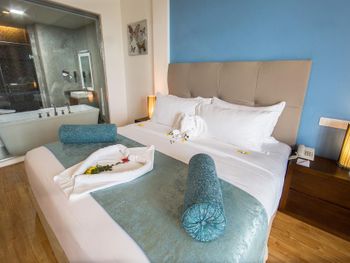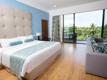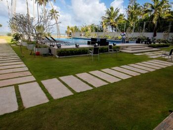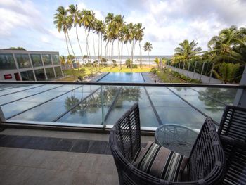 Сок на регистрации. Мы бронировали номер с 2-мя кроватями и видом на сад, но при заезде нам предложили 1 большую. За 5 минут нам решили возникшую проблему и дали шикарный номер с видом на океан без доплат. Персонал очень вежливый. Территория зелёная, тут живут 2 кролика, и ещё мы встретили бурундука. Есть спорт зал и ресторан а-ля карт. Сразу советую после дороги не берите шведский стол, лучше ешьте в ресторане, здесь очень вкусно. Закажите сразу рис и кари, у этого блюда обалденная подача!