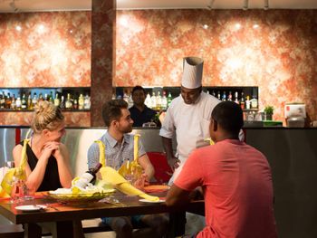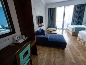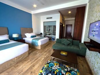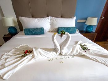 Отвратительная встреча, в 16 номер был не готов, в лобби воняло чем-то неописуемым, в номере явно курили и пытались скрыть это тяжелым и сладким освежителем воздуха. Воду, которую приносят в номер, пить невозможно - она воняет, протухла. Номер в ужасном состоянии, душевая просто разваливается, вода течет из-под ванной. Спортзал не работает. При выходе к океану - тебя достают местные каждый раз, пытаясь навязать разговор и предлагая рыбалку. Они прямо дежурят у выхода из отеля - это ужасно раздражает. На песке огромное количество мусора и бродячих собак. Грязно вообще все - на этаже, все окна, номера, сам отель. Отель находится на побережье, где когда-то до ковида были туристы и была жизнь, а сейчас все отели и рестораны вымерли, в деревне смотрят на туристов как на ходячий кошелек, выходить из отеля просто некуда.