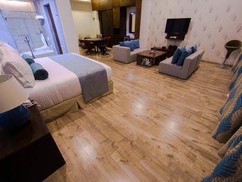 Сотрудник, занимающийся (почему-то в 08-09:00) уборкой бассейна был груб. Чистота, вообще не является отличительной чертой отеля, большое количества стеклянных дверей и перекрытий содержатся в ужасном состоянии (всё в пятнах). Территория очень маленькая, фотографии сделаны умело, создаётся иллюзия большей площади.