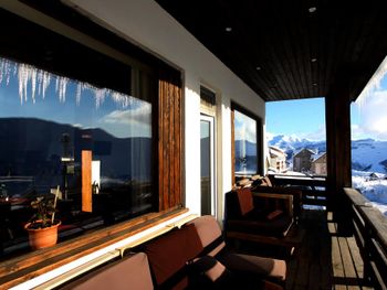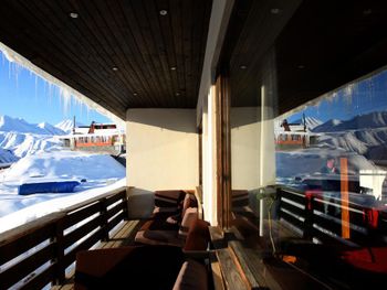 Расположение, удобство выезда/въезда на лыжах, большая терраса/балкон