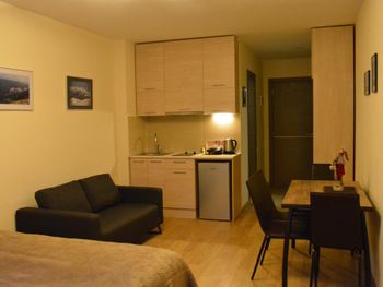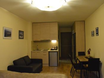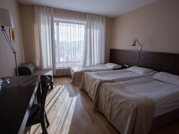 - Достойный завтрак и ужин, еда свежая и отличного качества. Не стоит рассчитывать на деликатесы или выбор как в сетевых отелях (Radisson и т.д.), но вполне прилично. - ВИД из окна номера и ресторана на горы. На горы, освещенные рассветами и закатами. Просто прекрасно. - есть возможность сделать ski in/ski out прямо из гостиницы.