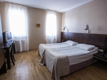Приехали парой, кровати раздельные, предложили на первом этаже двухместную кровать, но комната была расположена прям возле ресепшна(отказались) С двери балкона продувало В ресторане не было национальной еды, кроме как хачапури (вечером остались без ужина)