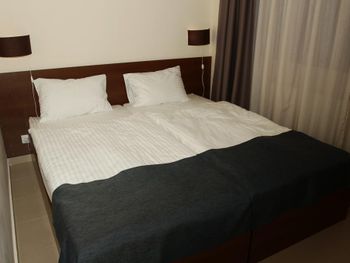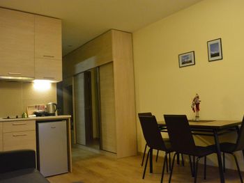 - Не всегда есть достаточный напор горячей воды в номере; - За ту стоимость, которую запрашивает отель, номера могут быть обставлены с большим шиком; - Ski in/ski out не такой удобный, как в отелях, расположенный непосредственно у подъемника. Лыжникам будет более комфортно, чем сноубордистам.