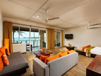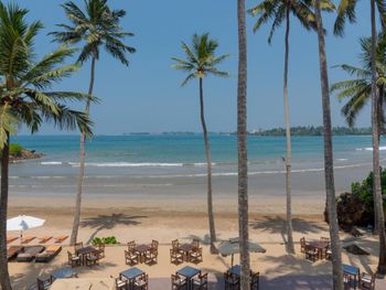 Ценник в 2 раза выше аналогичных отелей в Унаватуне. Отель слишком депрессивный. Не было даже лёгкой музыки в лаунж стиле ни на пляже, ни в ресторане. Из развлечений один раз на 7 января пел гитарист-аматор, пел ужасно. За этот день отель взял с нас очень дорого за проживание и кроме гитариста, больше ничего, обычный день. Отель старый и номера все старые. Мебель, двери и оборудование все пошарпаные. На стенах и потолках плесень. Стекла грязны. Дверь закрылась и открывалась ужасно, просели петли. Снизу огромная, 5 см щель. На пляже 18 шезлонгов на 16 номеров. Шезлонги очень неудобные, без регулировки наклона. Полотенца на пляже все старые, убитые. Очень много комаров из-за того что рядом речка, а травили их за 5 дней всего 1 раз. Океан здесь очень грязный, из-за того, что напротив рыбный рынок и с речки стекает грязь от местных жителей. Плавают рыбьи головы, шкуры, хвосты, шкурлупа яиц, даже видел мертвую крысу и тд.. На пляже постоянно запах соляры и рыбы от рыбного рынка. Пляж убирают, но не весь, отходишь немного в сторону, по территории отеля, горы мусора. До глубины идти примерно 30 метров. Нам питание не очень понравилось. Есть два три набора блюд, а все остальное, как комплексное меню. Всё мясо и морепродукты пережаренные, поэтому сухие. Все стейки жёсткие, невозможно прожевать. На ужин и завтрак тратишь 1-1,5 часа, в ожидании, пока тебе поэтапно все вынесут.. Цены в отеле на еду и напитки, как в очень дорогом отеле. Пиво самое дешёвое - 4$ и т.д. доп.кровать на 3-го человека, это ужасно неудобная раскладушка для карлика 1,7 метра. Бассейн весь под навесом, поэтому вода в нем все время холодная. Минибар в номере по нереально космическим ценам. Рядом с отелем выйти перекусить особо некуда, нужно ехать. Днём в обед, так вообще все рядом закрыто. Есть рядом только алкогольный магазин.