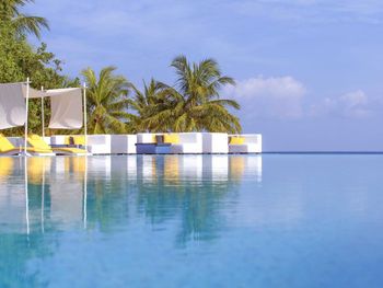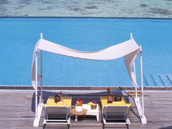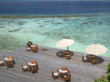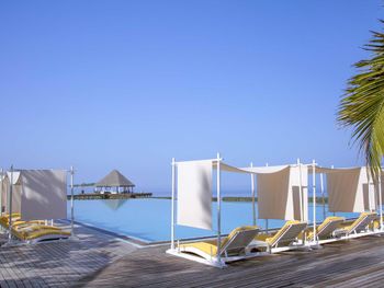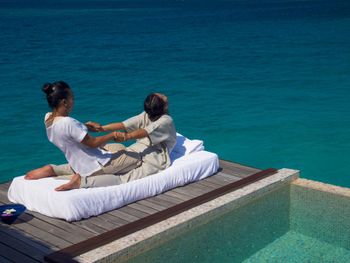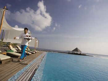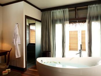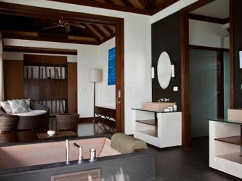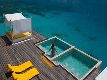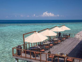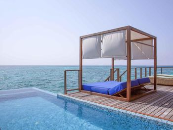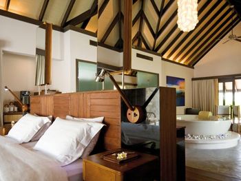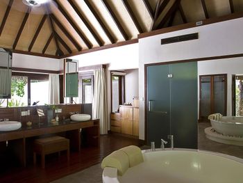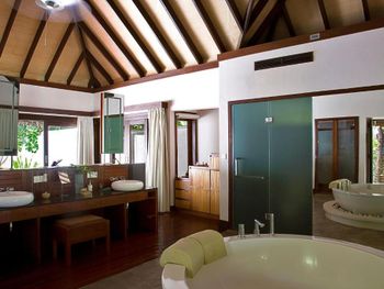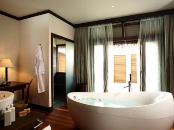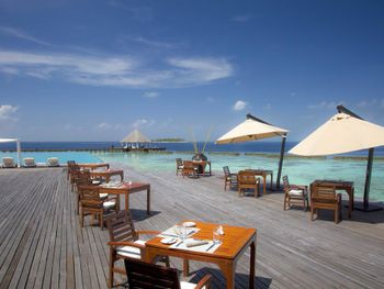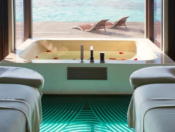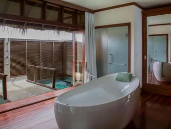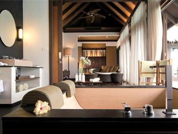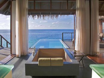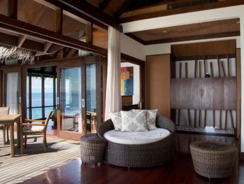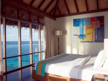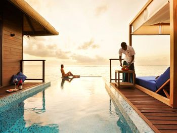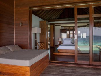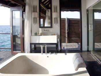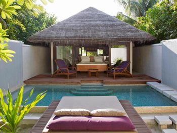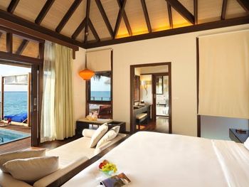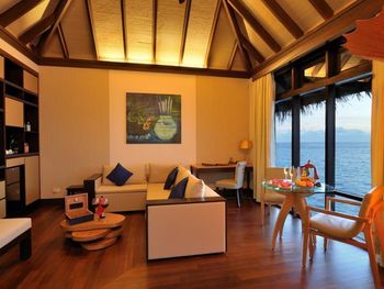 Мы жили в двух видах размещения в данном отеле. 3 дня проживали в вилле на острове , потом 3 дня в вилле на воде . Однозначно проживать вилле на острове намного комфортнее. Территория виллы состоит из огороженной бассейна (достаточно интимная зона , вас никто не удивит и не побеспокоит) , самой просторной виллы и террасы с выходом на пляж. За все время не встретилось ни с одним человек на пляже рядом с нашей виллой. Хорошая уборка, очень приветливый и доброжелательный персонал. Завтраки вкусные и разнообразные, свежевыжатые соки, каждый день разные фрукты, вкусная выпечка. В баре у бассейна так же неплохая кухня. Территория отеля зелёная, есть теннисный корт и волейбольная площадка, бассейн , много ресторанов. Можно взять бесплатное снаряжение для снорклинга, но оно неудобное и качество конечно оставляет желать лучшего. Вообще снорклинг не плохой, около водных вилл рифы , встречаются большие черепахи и рифовые акулы. Минус в прозрачности воды, так как всегда волны пусть и не большие - вода мутновата.