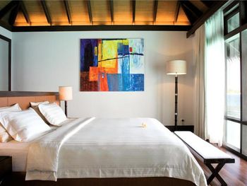 The luxurious villas at Coco Bodu Hithi feature flat-screen TVs, Chinese TV channels and DVD players. Hot coffee can be enjoyed at the outdoor decks or personal in-room bar. An electric kettle and personal safe are included. Free WiFi is available in rooms.