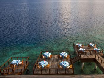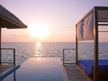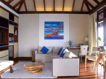 Отель старый и это бросается в глаза. Вилла на воде меньше по площади , ночью когда сильные волны, ужасный шум - поспать не удасться. Лестница к воде вся заросла водорослями. В бассейне в вилле на воде плитка отваливается , можно пораниться, что с нами и произошло. Если у вас не все включено, реальной проблемой становиться ужин! Мы столкнулись с этим в день приезда , в семь часов на острове не было возможности поужинать в ресторанах, так как места заняты и обязательно нужно бронировать заранее. Был выход заказать в номер, либо ужин на пляже за высокую цену. Так же следите за тем что вы оплачиваете, так как мы переезжали с виллу на виллу , нам в общий чек включали трансфер на 400 евро (хотя на остров мы приехали самостоятельно из другого отеля, а переезд с виллы на виллы был пешком:))