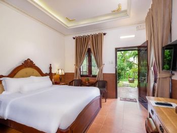 Отдыхали в супругой в марте 205 года. На Фукуок летаем каждый год с 2010 года и всегда хотел побывать в этом небольшом и уютном отеле, но он всегда был дорогой, а тут на скидку попал и сразу забронировал. Когда бронировал на Букинге подвязывал старую российскую карту VISA, но сразу написал в отель и попросил разрешения заплатить наличкой при заселении так как наши карты, как Вы все знаете, за рубежом не работают. Мне разрешили, но попросили скан. билета отправить. Отель на берегу самого лучшего пляжа Он-Ланг. Вода чистая. Лежаков всегда хватало. Территория хоть и не большая, но утопает в тропической зелени. Всё чисто. Номер очень большой, ванная тоже. Полотенца меняют каждый день. Шумоизоляция нормальная, так что сексом можно заниматься со стонами и криками. Завтраки нормальные, каждый день супчик ФО в различных вариациях, много фруктов. Персонал приветливый как и везде во Вьетнаме, негатива к Россиянам нет.