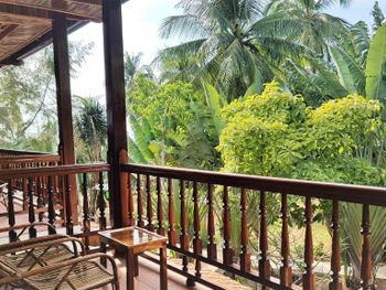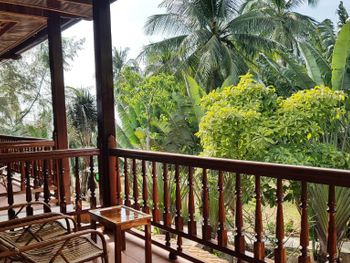 Это просто рай! Какой-то невероятный райский сад. Территория очень компактная, всего 30 номеров, но ты в полном ощущении, что ты один в джунглях. Такой ухоженный рукотворный сад, все в цветах, везде тень, каменные дорожки, глиняные кувшины для омовения от песка. Небольшой, компактный пляж - 60 лежаков в два ряда - все под пальмами, зонтиками - всегда есть тень. Всегда есть выбор, где разместиться. Вход в море очень комфортный одновременно и для детей, и для взрослых. Шагов 30-40 примерно 1 м глубины, песочек. Затем уже по шейку и глубина. Номер великолепный, с прекрасной кроватью (матрас достаточно жесткий, очень комфортный, 1,8 или 2 м в ширину). Огромная ванная комната, идеальная чистота, все прекрасно работает. Вода горячая стабильно идет, напор отличный. Холодильник работает, кондиционер тоже - никаких нареканий, идеально. Сейф принесут по запросу. Завтрак прекрасный, лапша+яйца на станции под запрос. Сыр+ветчина (съедобная, что редкость в Азии), бекон и сосиски, какие-то еще овощи-мясо в азиатском стиле. Фрукты, овощи/салат. Кофе-чай. ЙОГУРТ!!! Нереальный в баночках свежий, за него можно продать родину. Есть куда прогуляться налево-направо по берегу. В 300 метрах по направлению к главной дороге магазин типа минимаркет с нормальными ценами и ассортиментом вода-пиво-вино-кола-чипсы-фрукты и т.п. (смысла идти еще км до дороги нет). Там же пара ресторанов - рыбный "фэмили ресторан" и "tree house" - второй нам понравился больше, но тут уж кому что. Главное, есть выбор