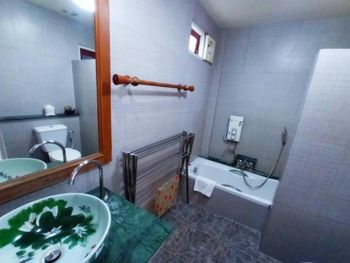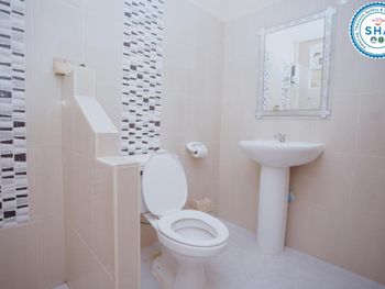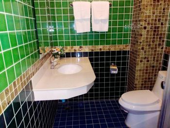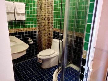 Номер был старенький. В душевой совсем не очень. Сразу за входом справа душ, нога попадает прямо в углубление под душ, можно упасть. Раковина не удобная и некуда складывать туалетные принадлежности.