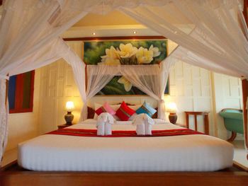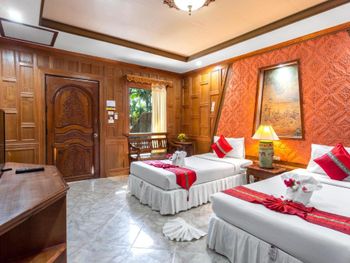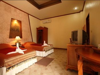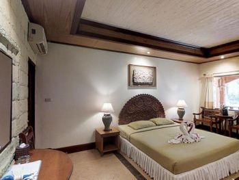 Жили в вилле на втором этаже, номера старые, ремонта не было со времени открытия, номера темные, душ проточного нагревания течет еле еле, завтраки очень скудные....,бунгало-хорошо, в стандартных номера и то ремонт свежее..., очень поразила пластиковая посуда на завтраке, такого я нигде не встречал, отвратный кофе....