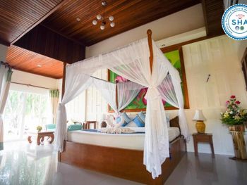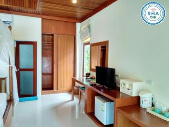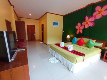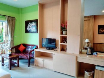 ПЛЯЖ!!!!!!! он в отеле НИКАКОЙ. 1. если дует ветер с моря - прозрачность воды никакая и выносит кучи мусора (ну это касается всего Клонг Прао, а северная часть пляжа особенно)... 2.отсутствие полноценных лежаков... 3. пляжные мошки!!!! без репилентов будите изрядно покусаны... в виллах старые TV