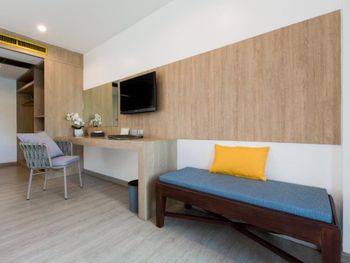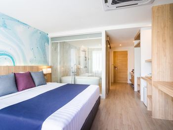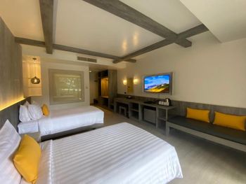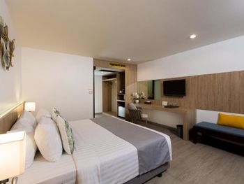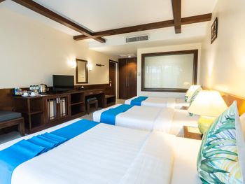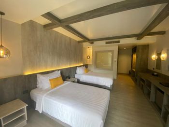 Понравилось всё, хороший, уютный отель. Просторный номер, у нас был на 2ом этаже в тропическом крыле, вид на бассейн. Хороший кондиционер. Большая терраса, приятно вечером поужинать. До моря минут 5-7 неспешным шагом, до Банглы минут 15. Рядом рынок Малина Плаза, можно рыбку или морепродукты на гриле поесть, так же много тайской еды, всё пробовали, ни разу проблем с желудком не было. Последние пару дней на нижних этажах прямо под нами шёл ремонт, видимо готовят номера для гостей после долгого перерыва. Немного шумели, но мы в это время уходили на океан. Завтрак хороший, омлет, яичница, рис, иногда лапша, блинчики, овощи, фрукты, хлопья, сосиски и ветчина, даже супчик был куриный. Очень вкусные круассанчики) Не было сыра и каши (но думаю это везде так в Тайланде). В общем достойный отель - чистота кристальная! Уборка каждый день+2 бутылки воды (горничным отдельное спасибо!). На ресепшене всегда помогут с любым вопросом. Спасибо огромное за тёплый приём!
