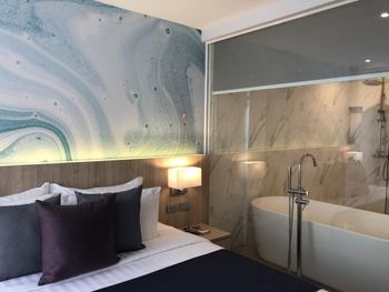 Комната очень грустная, уставшая мебель, воняет старостью. Со светом проблемы, расположение странное, в комнате темно. Убили 4 тараканов за раз в ванне🤦🏽‍♀️, сантехника тоже очень старая, не думаю, что отель заслуживает 4 звезды. завтрак ужасный, отвратительные круассаны , вода которая налита для питья была вонючая и невкусная, выбор маленький. Отель сильно разочаровал. когда была уборка в номере, не положили гель/Шампань и мыло. Плюс средства гигиены были в индивидуальной упаковке, по другим отелям заметила, что все отказались от такого и перешли на многоразовые упаковки. Кровать не очень удобная.