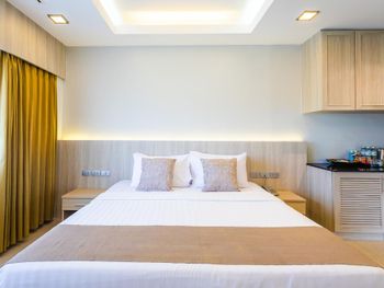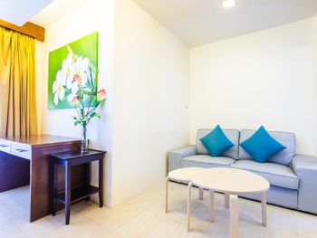 Ужасные старые номера. При заезде нам предоставили ужасно грязный номер с пятнами и жиром на столе и на полу. Мебель ушатанная и в пятнах, посуда грязная, плита вся в жиру и грязи. Свет на кухне не работал как только зашли в комнату, попросили проверить плиту - не работает. После пришел мастер и поменял газовый баллон для плиты, после видимо забыл его закрыть, пока менял механизм для света в лампе, комната была наполнена газом, заболела голова, при этом была полная духота на кухне. кондиционер только один в спальне, он не добивал до кухни, а на кухне была только вертушка на лампе, ее не хватало, за 30 минут что там провели истекли потом. Через 40 минут после знакомства с этим чудо ( оплата была заранее на ресепшн, номер до этого не показывали) пришли требовать деньги назад и выселения , в связи с тем что номер и отель не соответствовал описанию в букинге. Случился скандал, чего и стоит ожидать, когда вы отдаете деньги Тайцам, вернуть они их точно не захотят. После криков и оров от девки на ресепшн сошлись на оплате 1 ночи, но это с учетом того, что в букинге на этот день прописано была бесплатная отмена, что и было показано на ресепшене, на что они ссылались на какую-то нашу подпись при заезде, которая ничего не означала. Не желая иметь проблем и потерю времени согласились оплатить 1 день и уехали. 100 раз подумайте перед поездкой в этот отель и не теряйте времени и нервов, лучше переплатите за более качественные апартаменты.