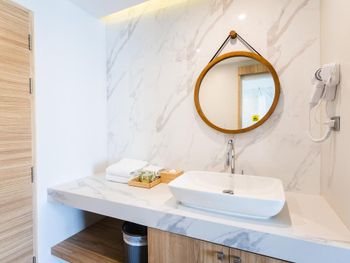 На Патонге, в центре веселья и тусовки, сложно найти тихое уединенное местечко. Но мы его нашли. Отель расположен равноудаленно от всего самого необходимого. 3 минуты до пляжа, 3 минуты до НайтМаркета, 3 минуты до оживленных улиц патонга и 5-10 минут до Jungceylon, Central и Бангла Роуд. В самом отеле все тихо и спокойно. Зеленая ухоженная территория с достаточно большим бассеином разной глубины. Мы жили в номере 212, из него открывается приятный вид на деревья и бассеин. Номер в минималистичном средиземноморско-тайском стиле. Ремонт и мебель в хорошем состоянии. В номере есть все, что только может понадобитсья на отдыхе, от чайника, фена, до зонтиков. Очень мягкая и удобная кровать с несколькими подушками. В ванной комнате есть помимо душа еще и ванная. Пикантной особенностью является матовое окно между комнатой и ванной. Хоть ничего и не видно, но тени будят воображение. :-) В номере очень чисто, убирают каждый день без напоминаний и назойливости. Мы брали номер с завтраком. Отличный завтрак с большим разнообразием блюд каждый день. Все очень вкусно. Отдельная благодарность персоналу отеля. При бронировании произошло недоразумение с месяцем (вместо июня, забронировали на июль), выяснилось это когда уже заселились в номер. :-) Они помогли все быстро решить с Букингом и исправить дату. Благодарю!